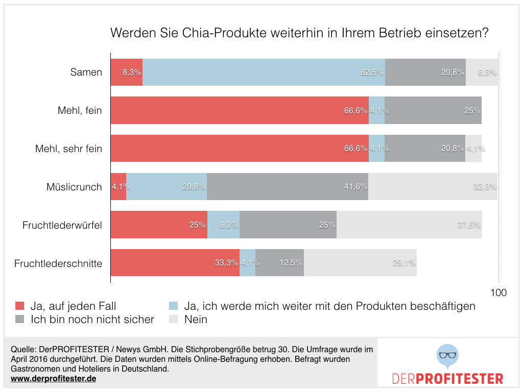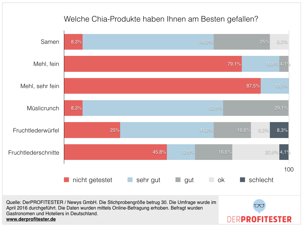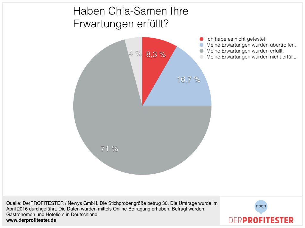 6. 95% der Profitester geben an, dass ihre Erwartungen zu Chia-Produkten erfüllt wurden. Klarer kann ein Ergebnis nicht ausfallen.