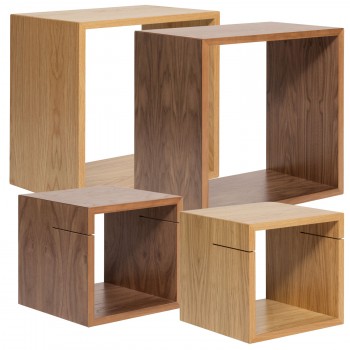 Variable Würfel in Eiche- und Nussbaumoptik lassen sich ganz einfach für die Präsentation Ihres Buffets zusammenstellen. Das System ist platzsparend und bietet dazu viele Möglichkeiten Leckereien in Szene zu setzen.